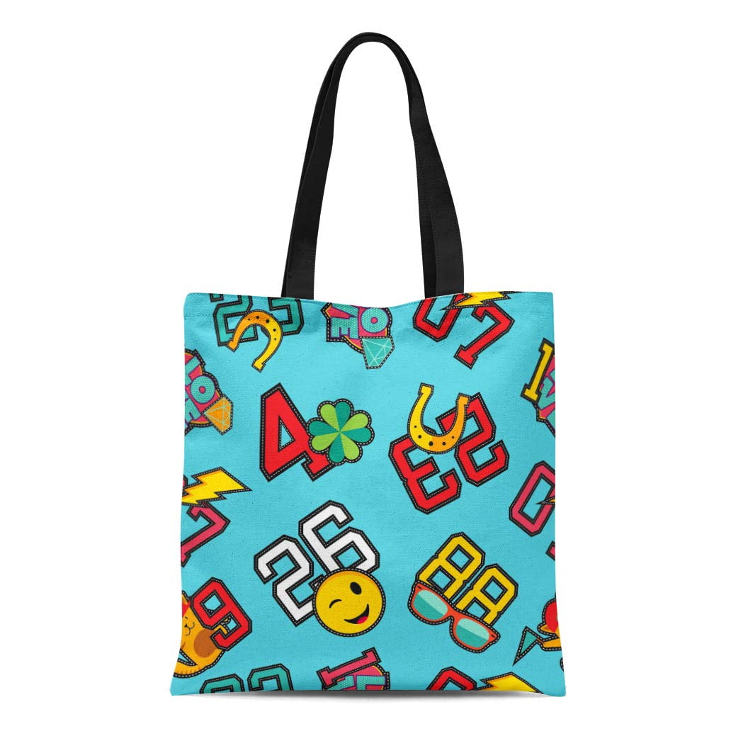Sidonku Canvas Tote Bag Fun Retro College Numbers And Pop Stitch Patch Reusable Shoulder Grocery Shopping Bags Handbag Walmart Com